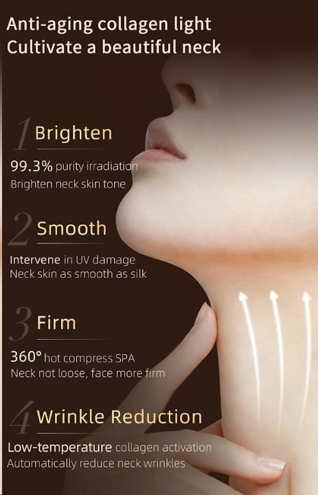 Táto unikátna maska bola navrhnutá tak, aby dokonale pokryla nielen krk, ale aj celý hrudník a hornú časť chrbta. Kľúčový rozdiel oproti bežným maskám spočíva v cielene, konturovanom dizajne, vďaka ktorému tesne obopína a ošetruje oblasť krku, dekoltu a hornej časti chrbta. Využíva klinicky overenú silu vysoko čistého červeného svetla o vlnovej dĺžke 660nm, ktoré je štandardom v profesionálnej dermatologickej starostlivosti. Svetlo preniká hlboko do pokožky, kde stimuluje produkciu kolagénu, zrýchľuje regeneráciu buniek a pomáha napraviť poškodenia spôsobené UV žiarením. Výsledkom je viditeľne pevnejšia, hladšia a farebne zjednotená pokožka.