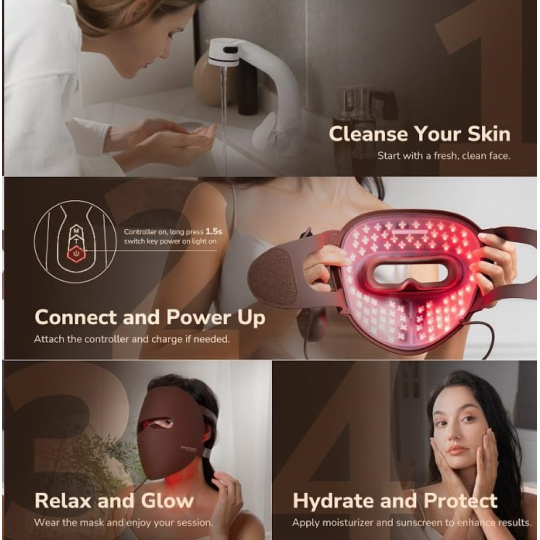 - Profesionálna 4-sektrálna LED terapia: Vybavená celkom 328 (82 x 4) vysoko intenzívnymi LED diódami pre maximálne pokrytie a účinnosť.
