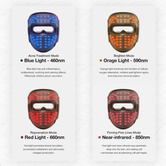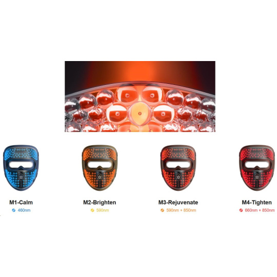 - Štyri klinicky overené vlnové dĺžky pre komplexnú starostlivosť o pleť: modrá, jantárová, červená a blízka infračervená.