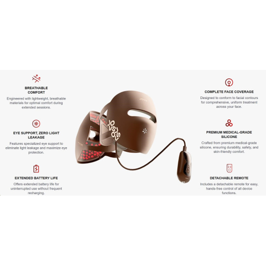 Predstavte si pleť, ktorá je deň čo deň čistejšia, pevnejšia a viditeľne mladšia. S maskou JOVS sa táto vízia stáva realitou. Vďaka pokročilej optickej technológii s 98% účinnosťou prenosu svetla energia preniká hlboko do pokožky a prináša viditeľné výsledky už za 4-6 týždňov pravidelného používania. S komfortným bezdrôtovým dizajnom sa váš denný rituál stane chvíľou relaxácie, na ktorú sa budete tešiť.