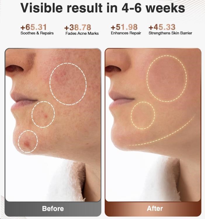 - Viditeľné výsledky za 4-6 týždňov: Pravidelné používanie preukazuje zníženie akné, vrások, pigmentácie a zlepšenie elasticity pleti.
