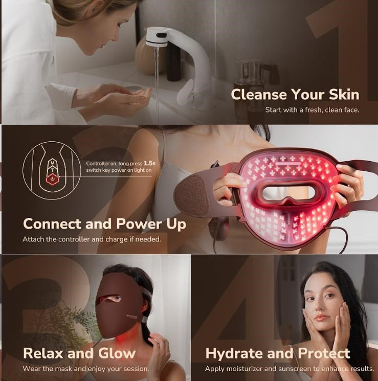 - Profesionálna 4-sektrálna LED terapia: Vybavená celkom 328 (82 x 4) vysoko intenzívnymi LED diódami pre maximálne pokrytie a účinnosť.