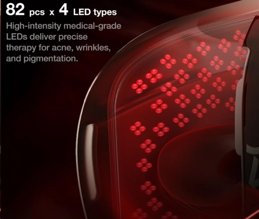 Táto maska nie je len obyčajným doplnkom – je to výkonný nástroj pre komplexné omladenie a liečbu pleti. V jej jadre sa skrýva celkom 328 (82 x 4) vysoko intenzívnych LED diód, ktoré vysielajú štyri typy klinicky overeného svetla. Každá vlna je zameraná na špecifické problémy v rôznych vrstvách pokožky – od boja proti akné, cez rozjasnenie pleti, až po hlbokú stimuláciu kolagénu pre zníženie vrások.