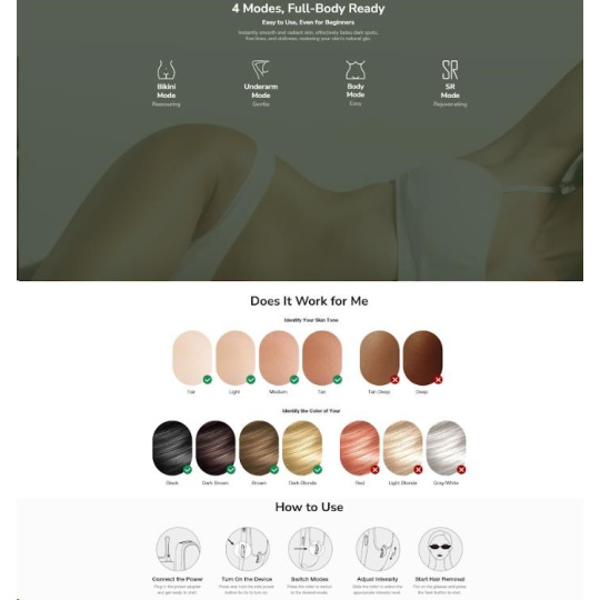 - Cielená starostlivosť pre celé telo: Niekoľko režimov a úrovní intenzity pre bezpečné ošetrenie nôh, rúk, podpazušia, oblasti bikín aj tváre.