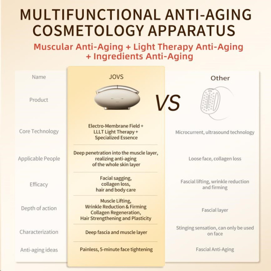 Väčšina kozmetických prístrojov sa zameriava len na dermis, teda na pokožku. Starnutie však začína hlbšie. Ak svaly pod kožou stratia svoju pevnosť, pokožka príde o svoju oporu a začne ochabovať a klesať – bez ohľadu na to, koľko kolagénu obsahuje. JOVS Slimax ako jediný využíva technológiu elektrických pulzných vĺn CET (Collagen Electrophoretic Techniques), ktorá vysiela signály priamo do svalovej vrstvy, stimuluje ich aktivitu a tým obnovuje pevný základ celej tváre.