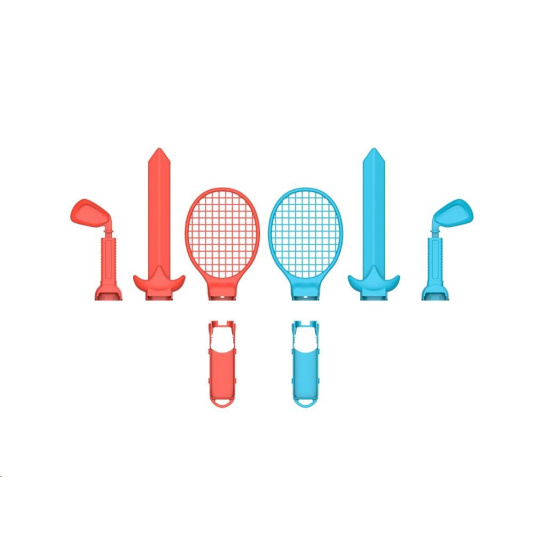 Obsah balenia: 2 závodné volantom, 2 tenisové/badmintonové rakety, 2x 2v1 popruhy, 2 meče, 2 golfové palice, 2 pištole, 2x rukoväte Joy-Con, 2x adaptéry.