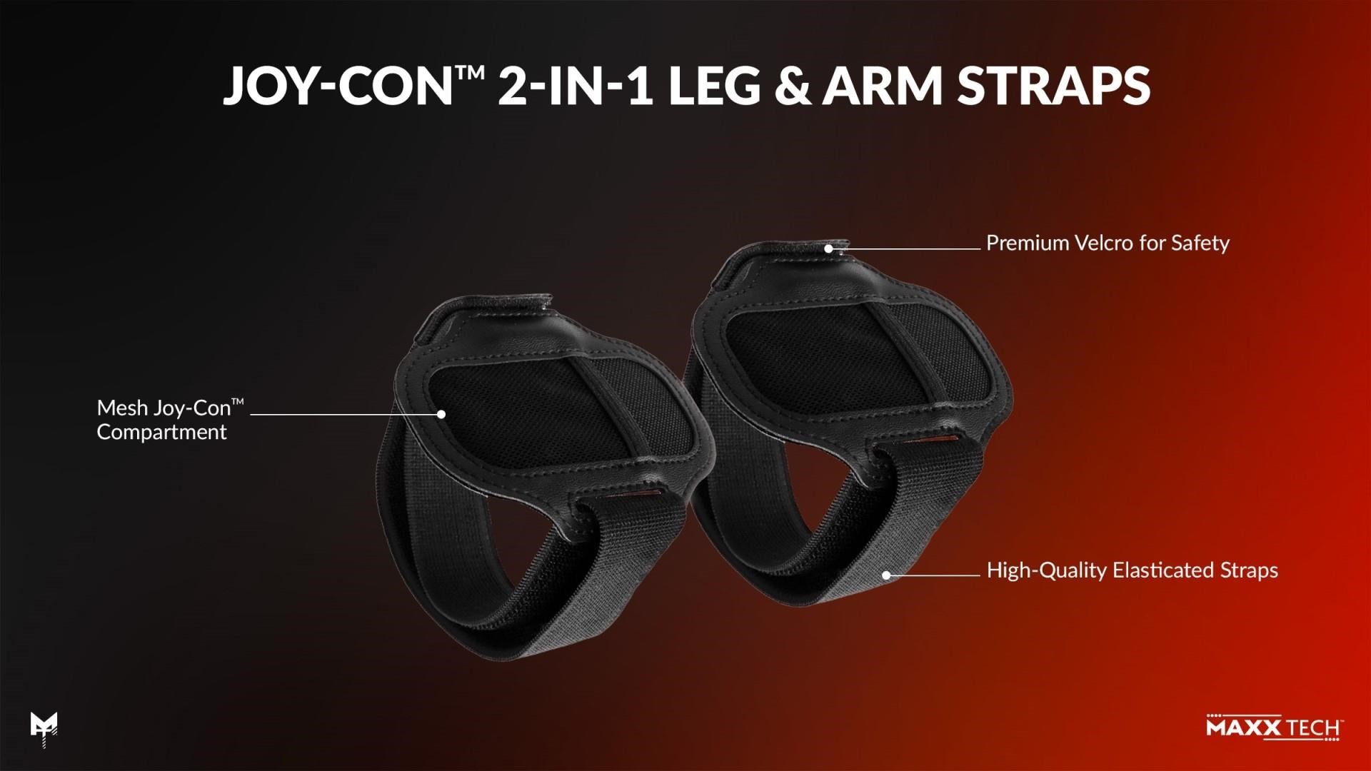 2x 2v1 popruhy na ruky a nohy – dajú sa nastaviť pre všetky vekové kategórie, aby vám ovládač Joy-Con™ pevne sedel