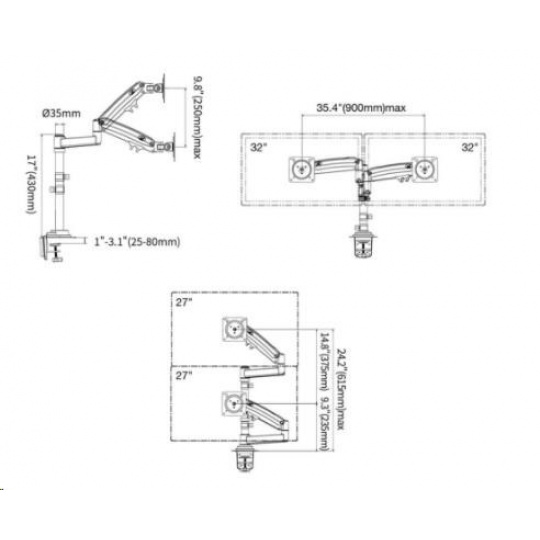 Kancelářský držák 2 monitorů Fiber Mounts H180B