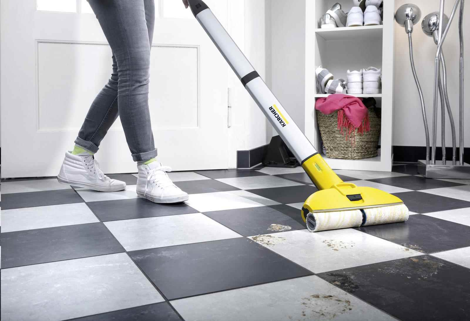 Vytierať stále čistou vodou? Bateriová podlahová myčka FC 3 Cordless sa o to postará. Nečistoty sú zhromažďované v nádobkách umiestnených za valcami. Rotujúce valce neustále zvlhčuje čistá voda, zatiaľ čo vytierané nečistoty sa dostanú do nádrže špinavej vody. Podlahy sú tak o 20 percent čistejšie ako pri použití bežného mop. Štíhla konštrukcia myčky FC 3 Cordless zabezpečuje bezproblémovú prácu aj pod nábytkom a jej pohodlné uloženie bez veľkých nárokov na miesto. Otočný kĺb sa postará o bezproblémové čistenie okrajov i rohov. Čas potrebný na uschnutie podlahy je iba približne 2 minúty, čím je možné túto myčku používať úplne bez starostí aj na tvrdé podlahy (napríklad aj na parkety). Výkonná lítiovo-iónová batéria poskytuje maximnú voľnosť pohybu, pretože je možné vytierať úplne nezávisle od zásuviek. A intuitívna LED kontrolka priebežne informuje o stave batérie.
