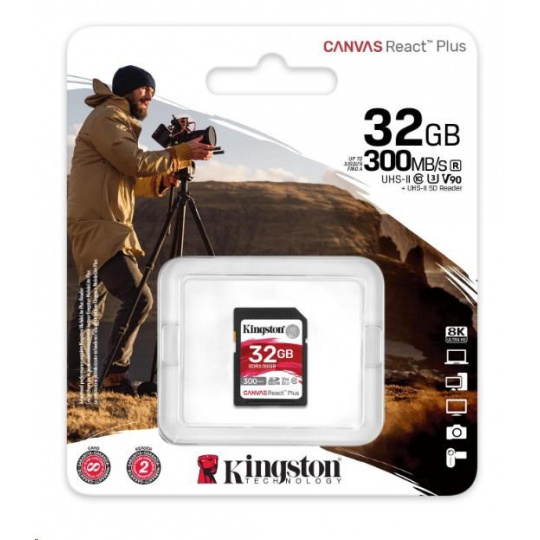 Kingston 32GB Canvas React Plus SDHC UHS-II 300R/260W U3 V90 pre Full HD/4K/8K