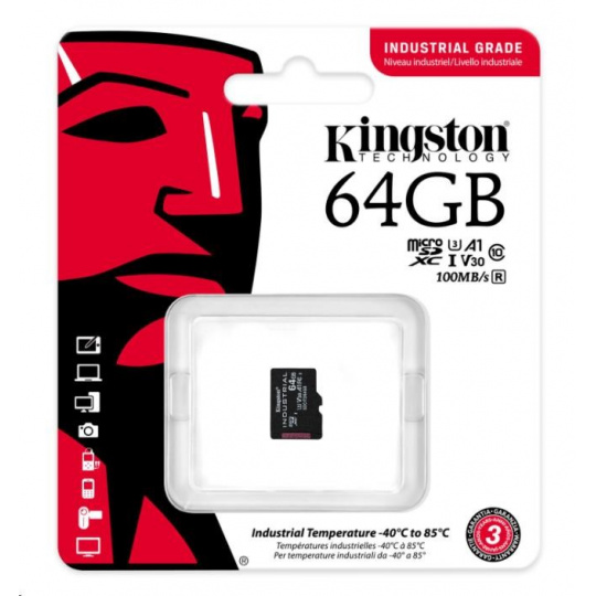 Kingston 64GB microSDXC Industrial C10 A1 pSLC karta v jednom balení