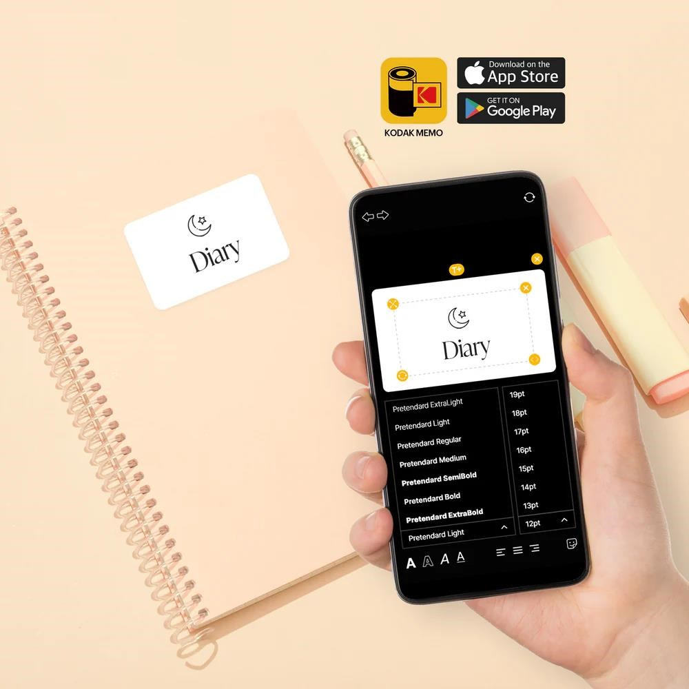 Fotoaparát s tlačením etikiet inšpirovaný ikonickým dizajnom filmových kaziet Kodak. Vyfoťte snímky a ihneď ich vytlačte, alebo pripojte telefón a tlačte obrázky z galérie na etiketa papier o veľkosti 2,7 × 1,8" prostredníctvom aplikácie KODAK MEMO.