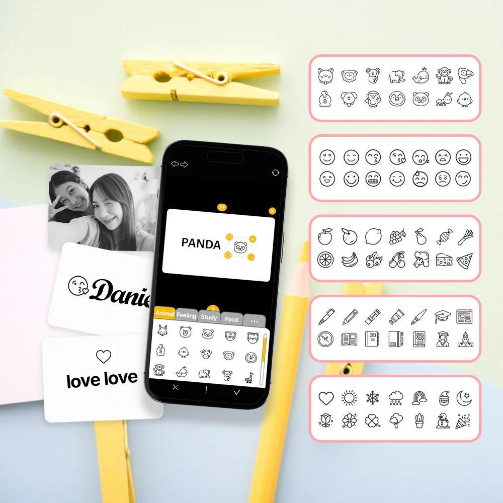 Vytvárajte a upravujte etikety priamo zo smartfónu. Importujte obrázky, pridajte text a upravte rozvrhnutie. Vyberajte z širokej ponuky fontov, samolepiek a emotikonov pre etikety akéhokoľvek účelu.