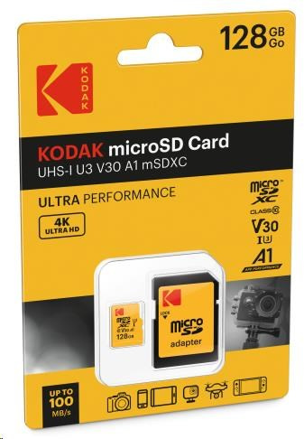 Kodak paměťová micro SD karta 128GB UHS-II U3 V60 Pro +adapt
