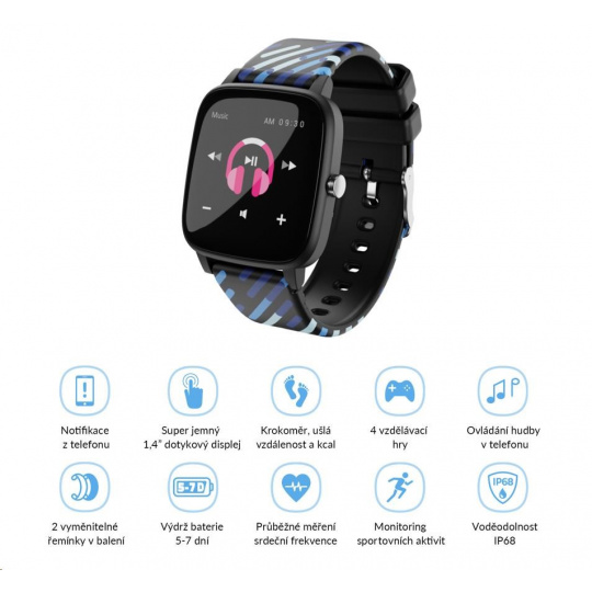 Štyri hry rozvíjajúce logiku, matematiku aj postreh skráti dlhé chvíle, nespočet ciferníkov spríjemní každý deň a funkcia nájdi telefón alebo naopak hodinky pomôže neporiadnikom. Vďaka kvalitnému spracovaniu a vodotesnosti IP68 môžu mať deti hodinky stále na ruke. Vy tak získate istotu, že si všimnú prichádzajúci hovor, keď vám volajú. BCool vibrujú a všetko zobrazia v češtine na super jasnom 1,4“ displeji.