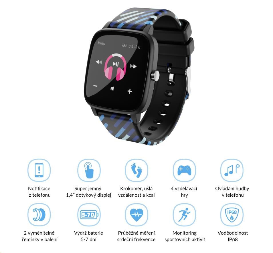 Štyri hry rozvíjajúce logiku, matematiku aj postreh skráti dlhé chvíle, nespočet ciferníkov spríjemní každý deň a funkcia nájdi telefón alebo naopak hodinky pomôže neporiadnikom. Vďaka kvalitnému spracovaniu a vodotesnosti IP68 môžu mať deti hodinky stále na ruke. Vy tak získate istotu, že si všimnú prichádzajúci hovor, keď vám volajú. BCool vibrujú a všetko zobrazia v češtine na super jasnom 1,4“ displeji.