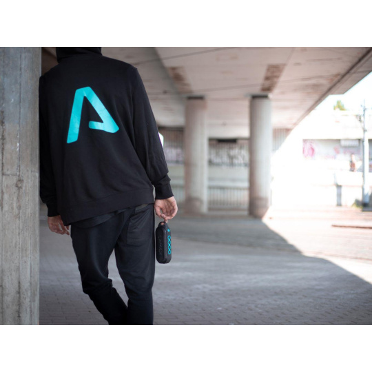 Tento reprák chceš mať stále pri sebe. Preto má priamo na tele praktické očko, za ktoré sa ľahko nosí. V balení nájdeš aj užitočnú karabínu – v sekunde ho tak môžeš pricvaknúť.
