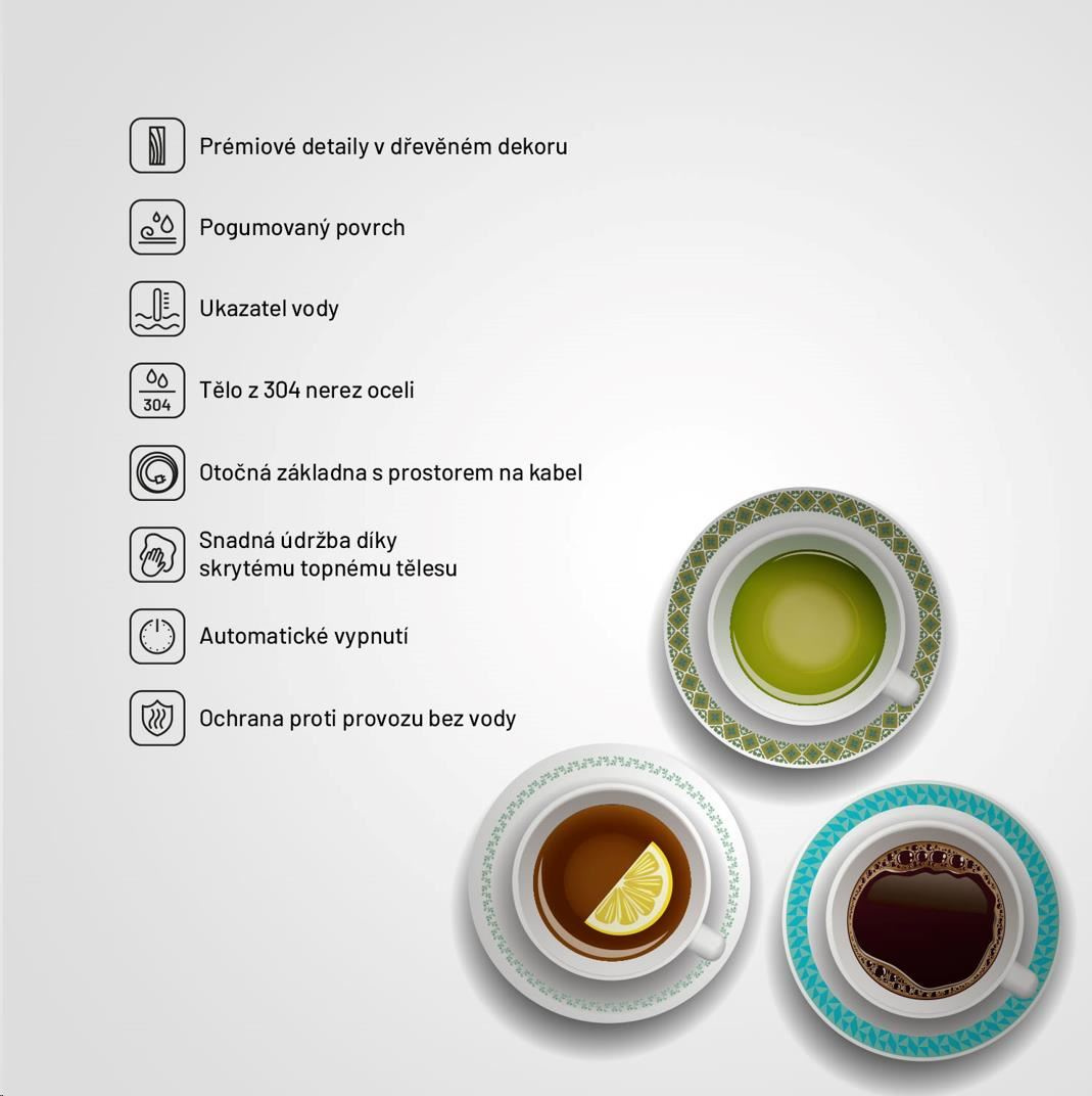 Topné teleso konvice je skryté, menej sa zanáša a vodný kameň tak nemá takmer šancu.