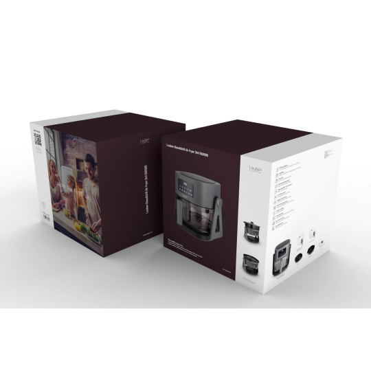 Zdravé varenie nebolo nikdy jednoduchšie a nemusíte sa vzdať ani obľúbených vyprážaných pochutín. Horkovzdušná fritovacia rúra s grilom Lauben Glass&Grill Air Fryer 3in1 5500BG prináša úplne novú dimenziu prípravy jedál využívajúcu až o 80 % menej tuku. Originálny sklenený kôš s viditeľnosťou 360° zabezpečuje ničím nerušenú chuť a arómu jedla, zároveň umožňuje jeho jednoduchú kontrolu počas prípravy, a to aj vďaka vnútornému osvetleniu. Varenie urýchľujú 6 prednastavených programov, no teplotu a čas je možné nastaviť aj manuálne na digitálnom dotykovom displeji. O rovnomerné prepečenie sa stará infračervené svetlo, pomocou otočnej hornej časti o 180° spolu s použitím priloženej grilovacej či hlbokej panvice získate viac možností prípravy. Fritovacia misa je chránená bezpečnostným krytom proti popáleniu, pachový filter zas chráni domácnosť pred nepríjemným zápachom. Čas ušetríte pri varení aj údržbe, príslušenstvo stačí len vložiť do umývačky. Praktické rady na použitie prináša video tutoriál.