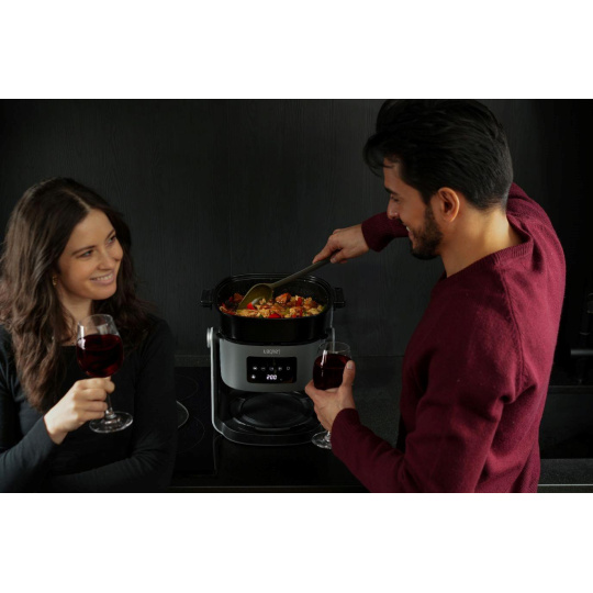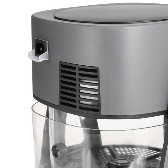 Prehľadným digitálnym displejom si intuitívne zvolíte niektorý zo 6 prednastavených programov na fritovanie hranoliek, mäsa či grilovanie - Fries, Steak, Fish, Shrimps, Pizza, Grill Mode. Čas aj teplotu si však nastavíte aj manuálne podľa potreby. Vďaka unikátnej sklenenej mise s viditeľnosťou 360° a vnútornému osvetleniu máte stále prehľad o priebehu prípravy jedla. Použitý materiál navyše nezanecháva žiadnu pachť či zápach v jedle.
