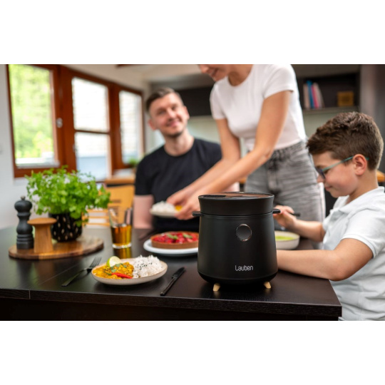Premeniť varenie na zábavu, ktorá navyše zaberie minimum času, je teraz vďaka Lauben Multifunction Rice Cooker 1500BW jednoduchšie než kedykoľvek predtým. Všeúčelový rýžovar s keramickým nepriľnavým povrchom vnútorného hrnca o objeme 1,5 l sa stane dokonalým pomocníkom na ceste k zdravému životnému štýlu. Jeho 9 prednastavených programov si poradí s prípravou rôznych pokrmov, ktoré aj začiatočník uvarí ako šéfkuchár. Pomocou nerezového parníka na dusenie v pare môžete variť ešte zdravšie, a to stlačením jediného tlačidla. Ak vám však program nevyhovuje, pohodlne si všetko nastavíte aj manuálne. Manipuláciu a ovládanie uľahčuje dotykový displej a technológia Cool Touch, ktorá je zároveň bezpečnostným prvkom na zabránenie popálenín. Užívateľsky prívetivá údržba, keď stačí vnútorný hrniec vložiť do umývačky riadu, tak tiež ušetrí veľa času. Prémiový dizajn s dreveným dekorom ozdobí každý interiér.