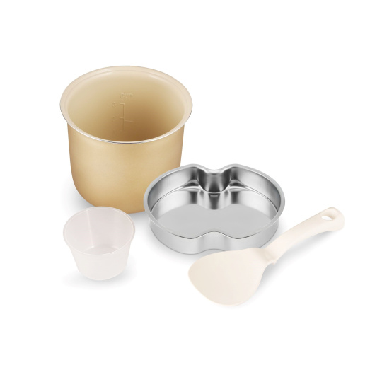 Ovládanie multifunkčného rýžovaču zvládne úplne každý pomocou prehľadného dotykového displeja, kde stlačením tlačidla aktivujete zvolenú funkciu alebo si manuálne nastavíte hodnoty podľa potreby. V 1,5 l hrnci s nepriľnavým povrchom pohodlne pripravíte jedlo pre celú rodinu alebo spoločenské stretnutie. Stačí ho potom vyňať a vložiť do umývačky, žiadne zložité drhnutie. Súčasťou balenia je tiež praktická odmerka a lyžica na ryžu.