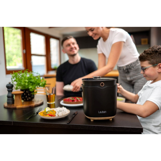 Premeniť varenie na zábavu, ktorá navyše zaberie minimum času, je teraz vďaka Lauben Multifunction Rice Cooker 2000BW jednoduchšie ako kedykoľvek predtým. Všeúčelový rýžovar s keramickým nepriľnavým povrchom vnútorného hrnca o objeme 2 l sa stane dokonalým pomocníkom na ceste ku zdravému životnému štýlu. Jeho 12 prednastavených programov si poradí s prípravou rôznych pokrmov, ktoré aj začiatočník uvarí ako šéfkuchár. S pomocou nerezového parníka na dusenie v pare môžete variť ešte zdravšie, a to stlačením jediného tlačidla. Keď vám však program nevyhovuje, pohodlne si všetko nastavíte aj manuálne. Manipuláciu a ovládanie uľahčuje praktické madlo, dotykový displej a technológia Cool Touch, ktorá je zároveň bezpečnostným prvkom zabraňujúcim popáleniu. Užívateľsky priateľská údržba, kedy stačí vnútorný hrniec vložiť do umývačky, tiež ušetrí veľa času. Prémiový dizajn s dreveným dekorom ozdobí každý interiér.