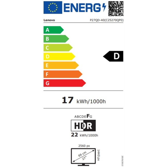 LENOVO LCD P27QD-40 - 27",ECO-IPS,16:9,2560x1440,120Hz,350cd/m2,1500:1,4ms(GtG),HDMI,DP,DPout,DC,USBHub,USB-C,RJ45,Pivot