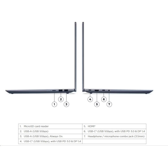 | Standartné porty | 1x USB-A (USB 5Gbps / USB 3.2 Gen 1) 1x USB-A (USB 5Gbps / USB 3.2 Gen 1), Always On 2x USB-C® (USB 5Gbps / USB 3.2 Gen 1), with USB PD 3.0 and DisplayPort™ 1.4 1x HDMI® 1.4b 1x Headphone / microphone combo jack (3.5mm) 1x microSD card reader |