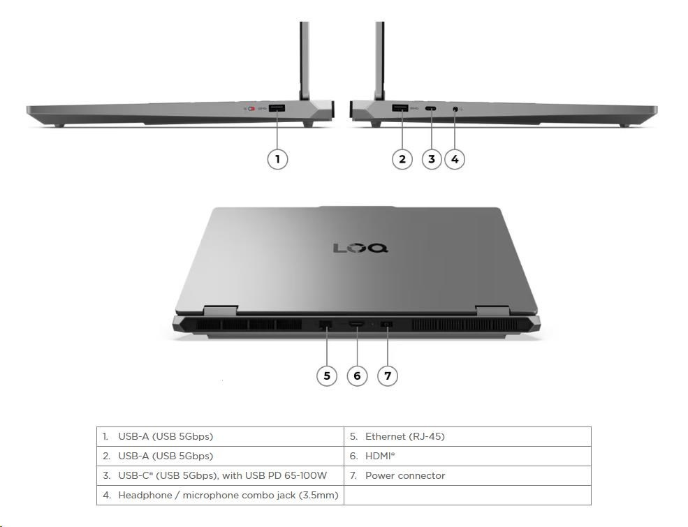 | Standartné porty | 2x USB-A (USB 5Gbps) 1x USB-C® (USB 5Gbps), with USB PD 65-100W 1x HDMI® 2.1, up to 8K/60Hz 1x Headphone / microphone combo jack (3.5mm) 1x Ethernet (RJ-45) 1x Slim tip Power connector |