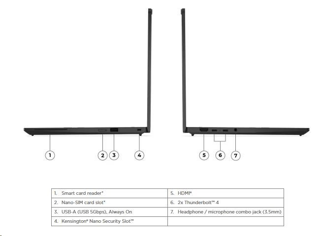 | Standartné porty | 1x USB-A (USB 5Gbps / USB 3.2 Gen 1), Always On 2x USB-C® (Thunderbolt™ 4 / USB4® 40Gbps), with USB PD 3.0 and DisplayPort™ 2.1 1x HDMI® 2.1, up to 4K/60Hz 1x Headphone / microphone combo jack (3.5mm) |