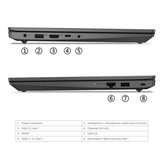 | Standartné porty | 1x USB 2.0 1x USB 3.2 Gen 1 1x USB-C® 3.2 Gen 1 (support data transfer, Power Delivery 3.0 and DisplayPort™ 1.2) 1x HDMI® 1.4b 1x Headphone / microphone combo jack (3.5mm) 1x Ethernet (RJ-45) 1x Power connector |