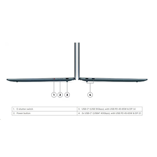 | Standartné porty | 1x USB-C® (USB 10Gbps), with USB PD 45-65W and DisplayPort™ 1.4 2x USB-C® (USB4® 40Gbps), with USB PD 45-65W and DisplayPort™ 2.1 |
