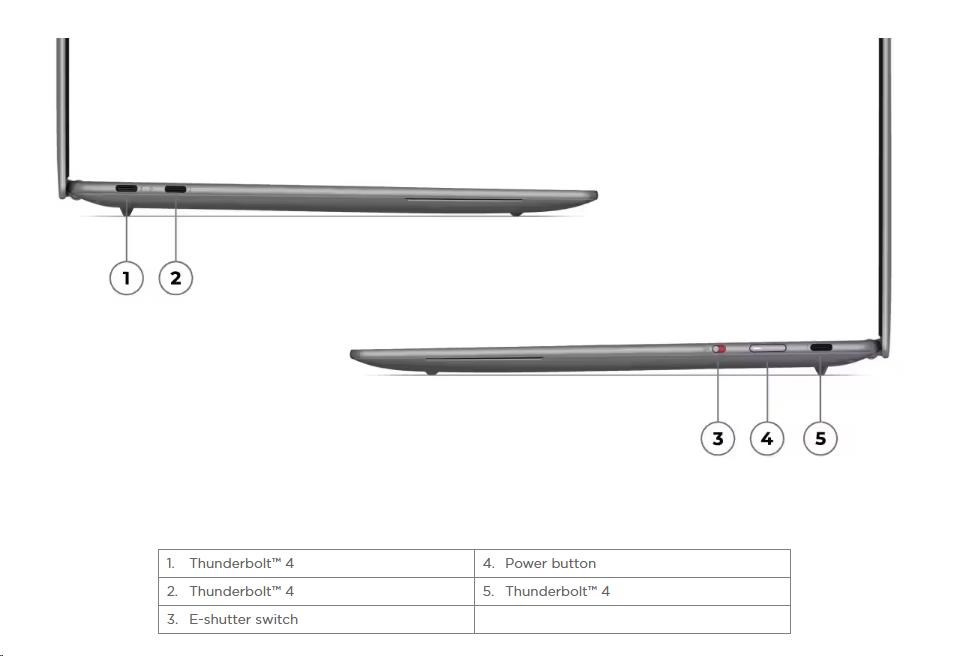 | Standartné porty | 3x Thunderbolt™ 4, with USB PD 45-65W and DisplayPort™ 2.1 |