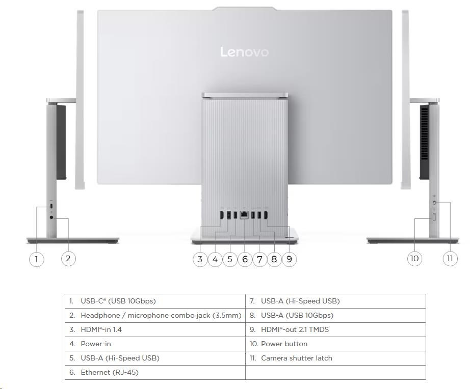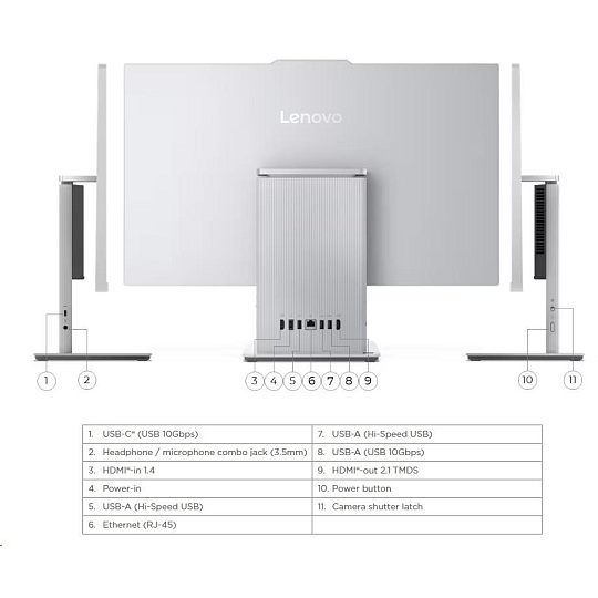 | Standartné porty | 1x USB-A (USB 10Gbps / USB 3.2 Gen 2) 2x USB-A (Hi-Speed USB / USB 2.0) 1x HDMI®-in 1.4 1x HDMI®-out 2.1 TMDS 1x Ethernet (RJ-45) 1x power connector 1x USB-C® (USB 10Gbps / USB 3.2 Gen 2), data transfer only 1x headphone / microphone combo jack (3.5mm) |
