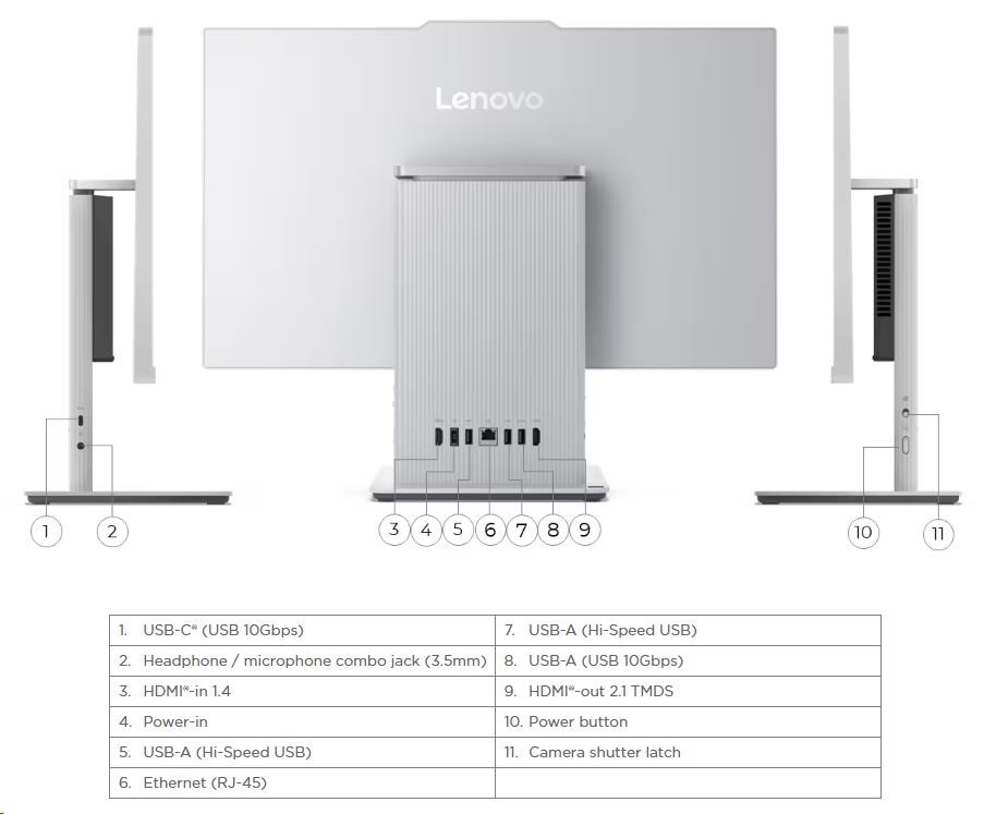 Standartné porty | 1x USB-A (USB 10Gbps / USB 3.2 Gen 2) 2x USB-A (Hi-Speed USB / USB 2.0) 1x HDMI®-in 1.4 1x HDMI®-out 2.1 TMDS 1x Ethernet (RJ-45) 1x power connector 1x USB-C® (USB 10Gbps / USB 3.2 Gen 2), data transfer only 1x headphone / microphone combo jack (3.5mm) |