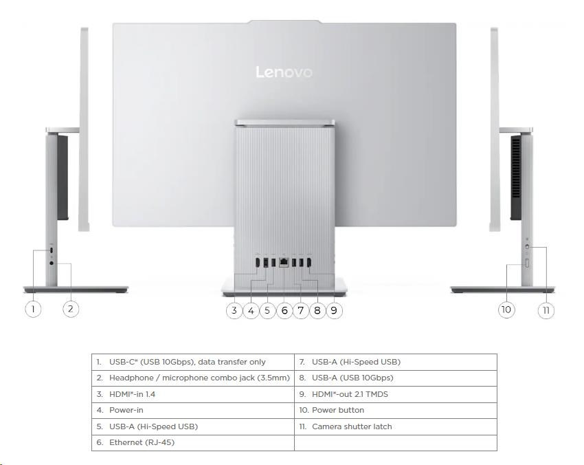 Standartné porty | 1x USB-A (USB 10Gbps / USB 3.2 Gen 2) 2x USB-A (Hi-Speed USB / USB 2.0) 1x HDMI®-in 1.4 1x HDMI®-out 2.1 TMDS 1x Ethernet (RJ-45) 1x power connector |