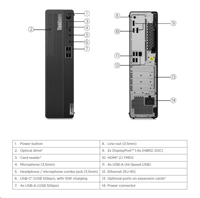 Predné porty | 1x USB-C® (USB 5Gbps / USB 3.2 Gen 1), with 15W charging 4x USB-A (USB 5Gbps / USB 3.2 Gen 1) 1x headphone (3.5mm) 1x headphone / microphone combo jack (3.5mm) |