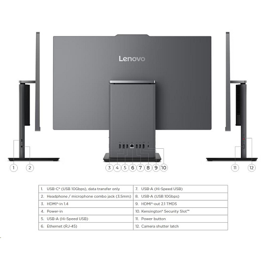 | Zadné porty | 1x USB-A (USB 10Gbps / USB 3.2 Gen 2) 2x USB-A (Hi-Speed USB / USB 2.0) 1x HDMI®-in 1.4 1x HDMI®-out 2.1 TMDS 1x Ethernet (RJ-45) 1x power connector |