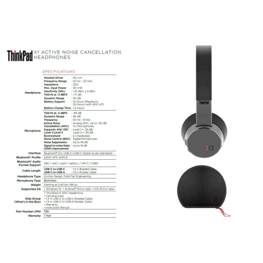 Lenovo slúchadlá ThinkPad X1 s aktivným potláčaním hluku
