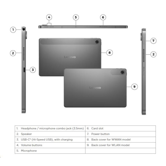 | Standartné porty | 1x USB-C® (Hi-Speed USB / USB 2.0), with charging, digital audio 1x Headphone / microphone combo jack (3.5mm) 1x Card slot |