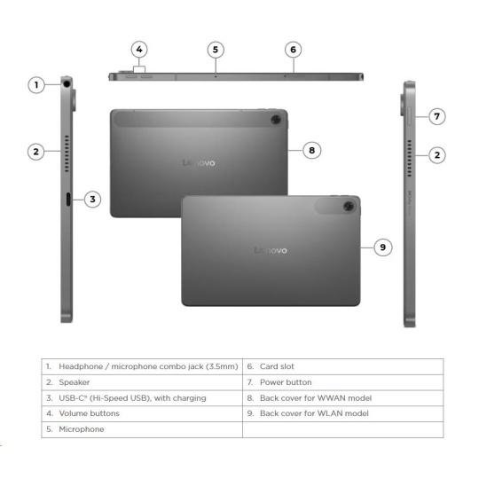 | Standartné porty | Standard Ports 1x USB-C® (Hi-Speed USB / USB 2.0), with charging, digital audio 1x Headphone / microphone combo jack (3.5mm) 1x Card slo |