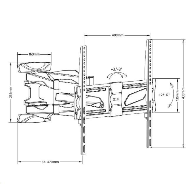 Levný otočný držiak LCD Fiber Mounts DELTA781 Cenovo výhodný spoľahlivý a bezpečný držiak na TV 26-60", otočný, sklopný, dĺžkovo nastaviteľný Potrebujete zaviesť televíziu na spoľahlivý a bezpečný držiak a nechcete pritom veľmi míňať? Môžeme Vám odporučiť nástenný TV držiak Fiber Mounts DELTA781. Vysoká nosnosť 45kg, dve veľmi pevné ramená, zabezpečenie televízora proti vysadeniu, väčšia installačná plocha pre ukotvenie do steny. Držiak ponúka pohodlné polohovanie televízora - otáčanie na obe strany, naklonenie obrazovky mierne nahor alebo nadol, nastavenie vzdialenosti od steny podľa potreby. Výsuv obrazovky prebieha v osi uchytenia, preto je držiak vhodný na ukotvenie nielen na stenu, ale aj do pripravených výklenkov alebo do obývacích stien. Ak sa Vám nepodarila montáž presne do roviny a obrazovka nie je po zavese vo vodováhe, nie je potrebné vykonať novú inštaláciu, ľahko upravíte rovinu televízie bez nutnosti reinstalácie. Nástenný úchyt aj ramená držiaku sú opatrené dizajnovými krytkami, pod ktorými môžete skryte viesť všetku kabeláž. Farebné prevedenie je čierne, na držiak poskytujeme predĺženú záruku na 3 roky. Levný, bezpečný a spoľahlivý držiak na všetky TV s hmotnosťou do 45kg, podpora VESA 100x100 až 400x400, otočný do strán, dĺžkovo nastaviteľný, sklopný, TOP kvalita za skvelú cenu - držiak Fiber Mounts DELTA781 Vynikajúci televízny držiak za skvelú cenu Fiber Mounts DELTA781 - otáčanie do strán, dĺžkové nastavenie, náklon, korekcia roviny, vedenie kabeláže, spoľahlivosť a bezpečnosť. Technické údaje: nosnosť 45kg podpora VESA štandardu 100x100 až 400x400 odporúčame na televízory s uhlopriečkou 26" až 60" vhodný na všetky typy televízorov - LCD, LED, OLED, QLED, plazma, 3D, Smart, prehnuté vhodný na všetky značky televízorov - Samsung, LG, SONY, Panasonic, ECG, GoGEN, Hisense, Changhong, Hyundai, Orava, Philips ... nastaviteľná vzdialenosť od steny 57mm až 470mm otáčanie TV na obe strany +/- 75° nakoľnenie obrazovky hore aj dole +2° až -12° korekcia roviny obrazovky +/- 3° inštalačná plocha na stenu o rozmeroch 160mm x 235mm (šírka x výška) zabezpečenie televízora proti vysadeniu integrovaná vodováha pre uľahčenie montáže veľmi jednoduché polohovanie bezpečná a spoľahlivá oceľová konštrukcia dizajnové kryty ramien pre skryté vedenie všetkej kabeláže súčasť balenia je univerzálna inštalačná sada (šrouby, vruty, hmoždinky, podložky) farebné prevedenie čierne predĺžená záruka 3 roky Spoľahlivý držiak na všetky značky TV - Sony, Samsung, Panasonic, GoGEN, Hyundai, Panasonic, Sencor, Philips, Changhong, Hisense, Hitachi - držiak TV Fiber Mounts DELTA781 Držiak podporuje VESA štandardy pre zavešenie televízorov: VESA 100x100 VESA 200x100 a 100x200 VESA 200x200 VESA 300x100 a 100x300 VESA 300x200 a 200x300 VESA 300x300 VESA 400x100 a 100x400 VESA 400x200 a 200x400 VESA 400x300 a 300x400 VESA 400x400 Držiak Tv Fiber Mounts DELTA781 je vhodný na zavešenie všetkých typov, značiek a veľkostí TV, ktoré majú hmotnosť do 45kg a ktoré podporujú niektorý z uvedených VESA štandardov. Na veľkosti televízora priamo nezáleží, môžete zaviesť aj väčšie televízory za splnenia vyššie uvedených podmienok.
