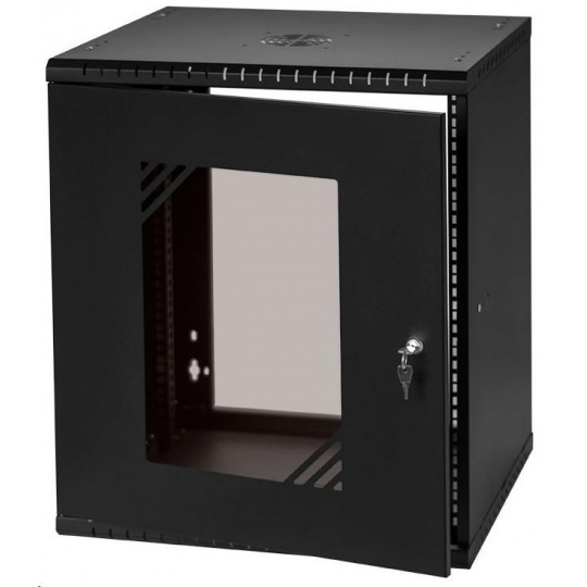 LEXI-Net 19" nástěnný rozvaděč Basic 12U 520x450, skleněné dveře, bez zad, rozložený, černý