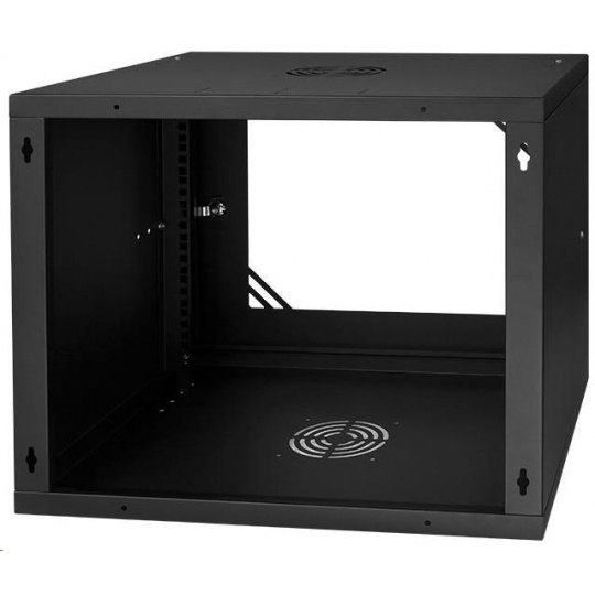LEXI-Net 19" nástěnný rozvaděč Basic 9U 525x450, skleněné dveře, bez zad, rozložený, černý