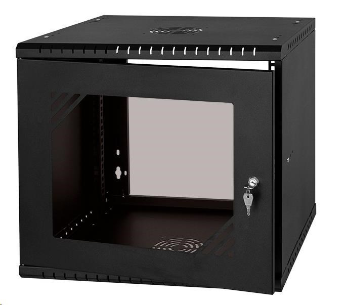 LEXI-Net 19" nástěnný rozvaděč Basic 9U 525x450, skleněné dveře, bez zad, rozložený, černý