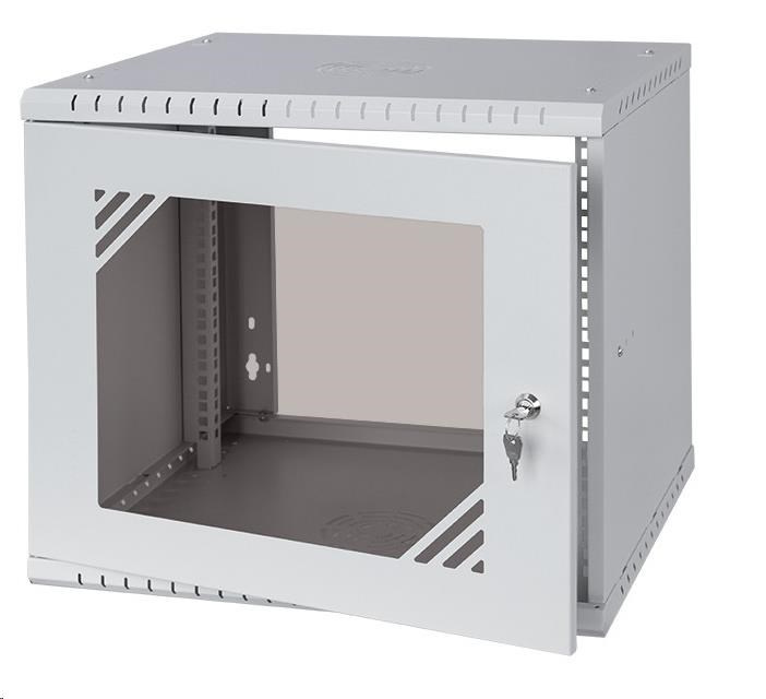 LEXI-Net 19" nástěnný rozvaděč Basic 9U 525x450, skleněné dveře, bez zad, rozložený, šedý