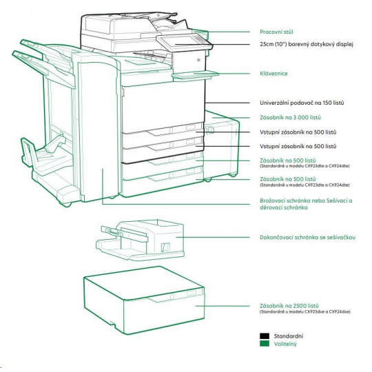 Farebná tlačiareň LEXMARK CX923dxe, A3, 55 str./min, 2048 MB, farebný LCD displej, DADF, USB 2.0, LAN