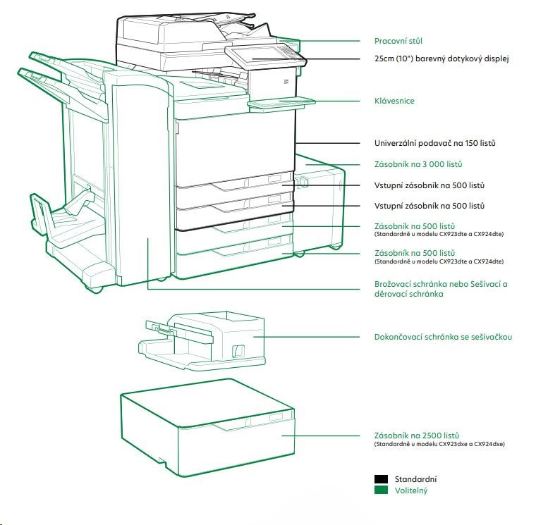 Farebná tlačiareň LEXMARK CX924dte, A3, 65 str./min,2048 MB, farebný LCD displej, DADF, USB 2.0, LAN