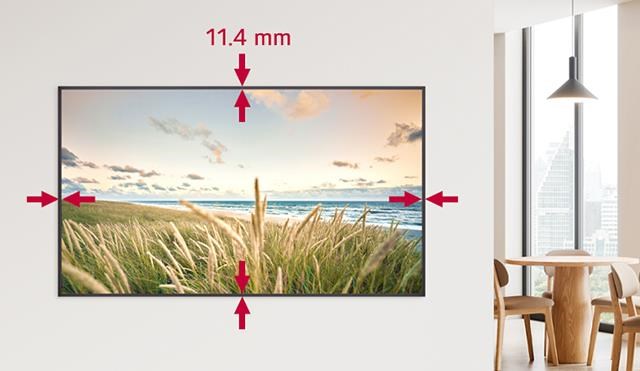 Model UH7Q se pyšní skvělým zážitkem ze sledování díky tenkému profilu, což je velmi výhodné pro interiérový design. Při použití v režimu na výšku i na šířku si rámeček zachovává jednotnou tloušťku na všech čtyřech stranách, čímž zajišťuje dokonalou symetrii nahoře, dole, vlevo i vpravo. Jedná se tak o model vhodný pro nejrůznější možnosti stylingu.
